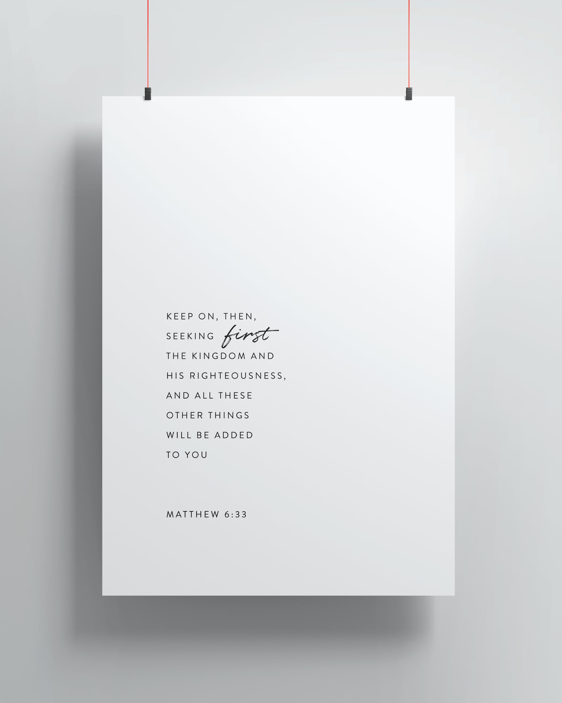Matthew 6:33 Rolled Poster | Wall Art for Home Decor, Inspirational Gift, Bible Verse Wall Art, Christian Art, Modern Minimalist Decor